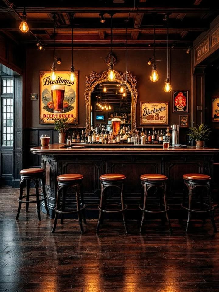 A bar is more than a place to pour drinks — it’s a space to gather, relax, and show personality. Adding vintage pieces like retro glassware, nostalgic posters, or rustic stools gives it character that modern décor often lacks. The mix of worn textures, bold colors, and iconic designs creates a setting that feels both nostalgic and welcoming. -