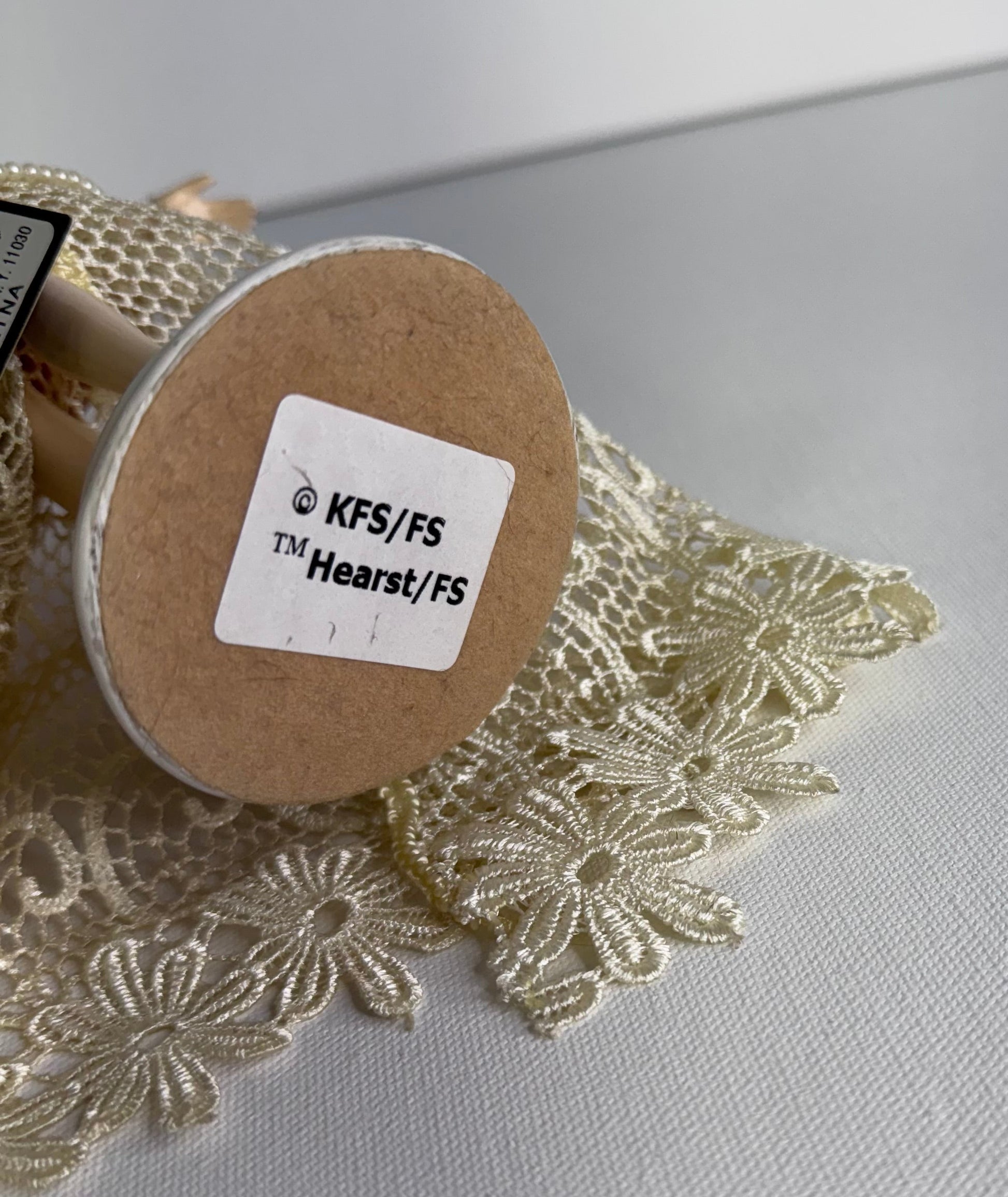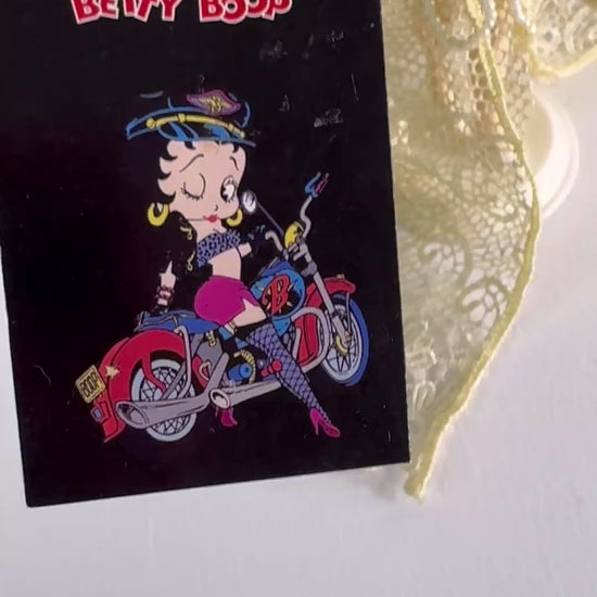 The bottom is marked © KFS/FS, TM Hearst/FS, confirming this is an officially licensed Betty Boop collectible. There is also a small hang tag attached. The figurine appears to be made from painted resin with fabric lace overlay.