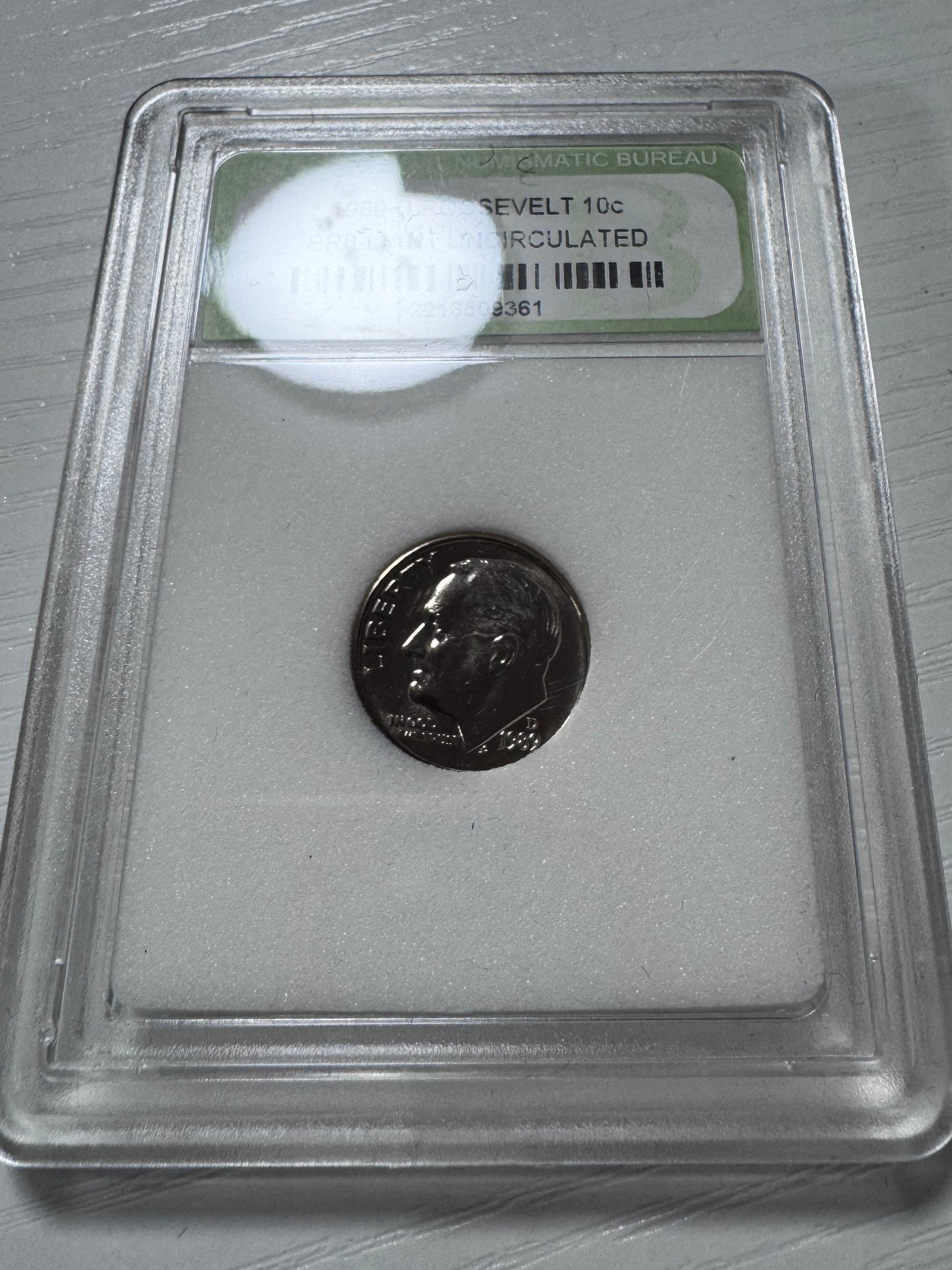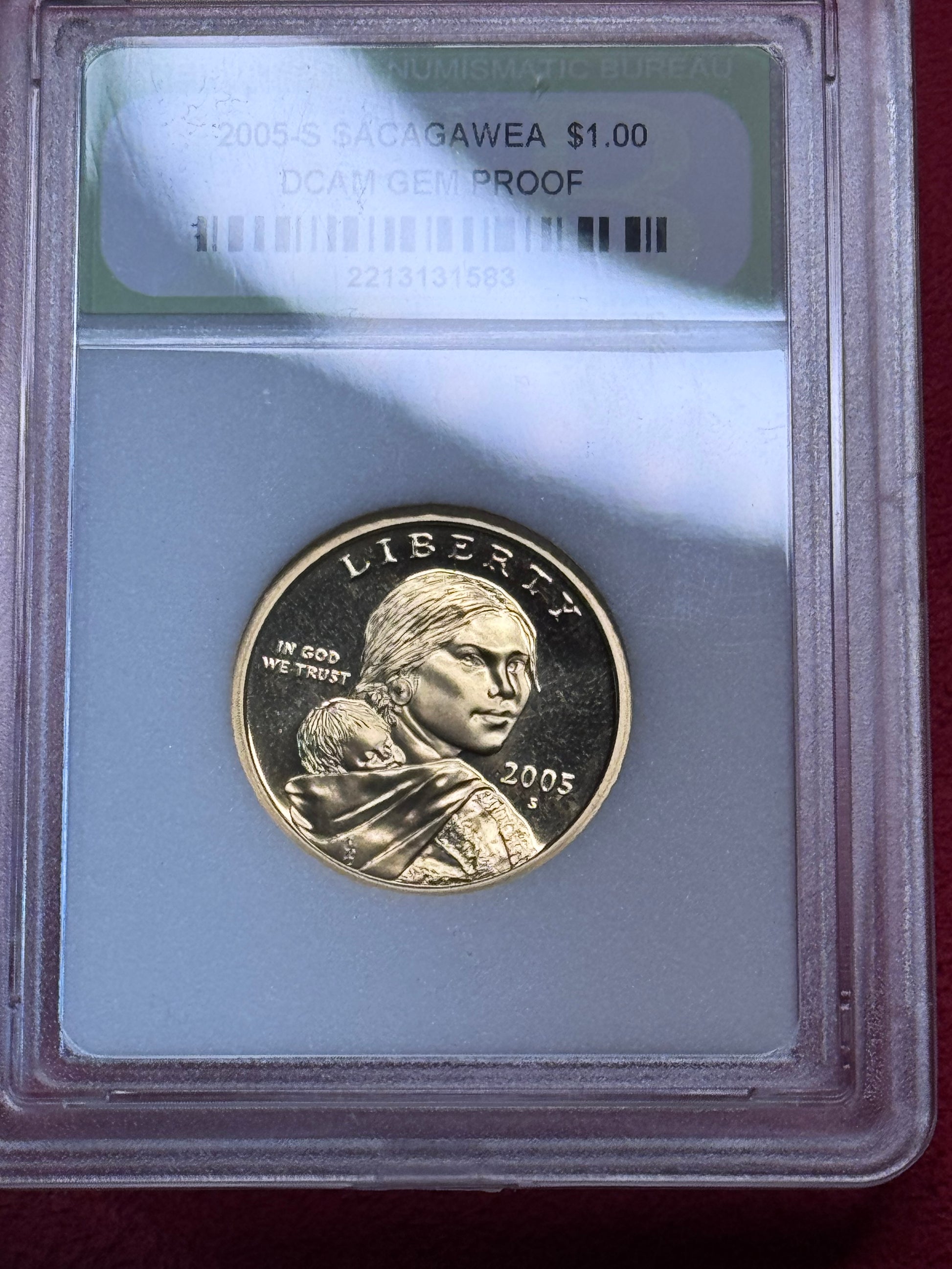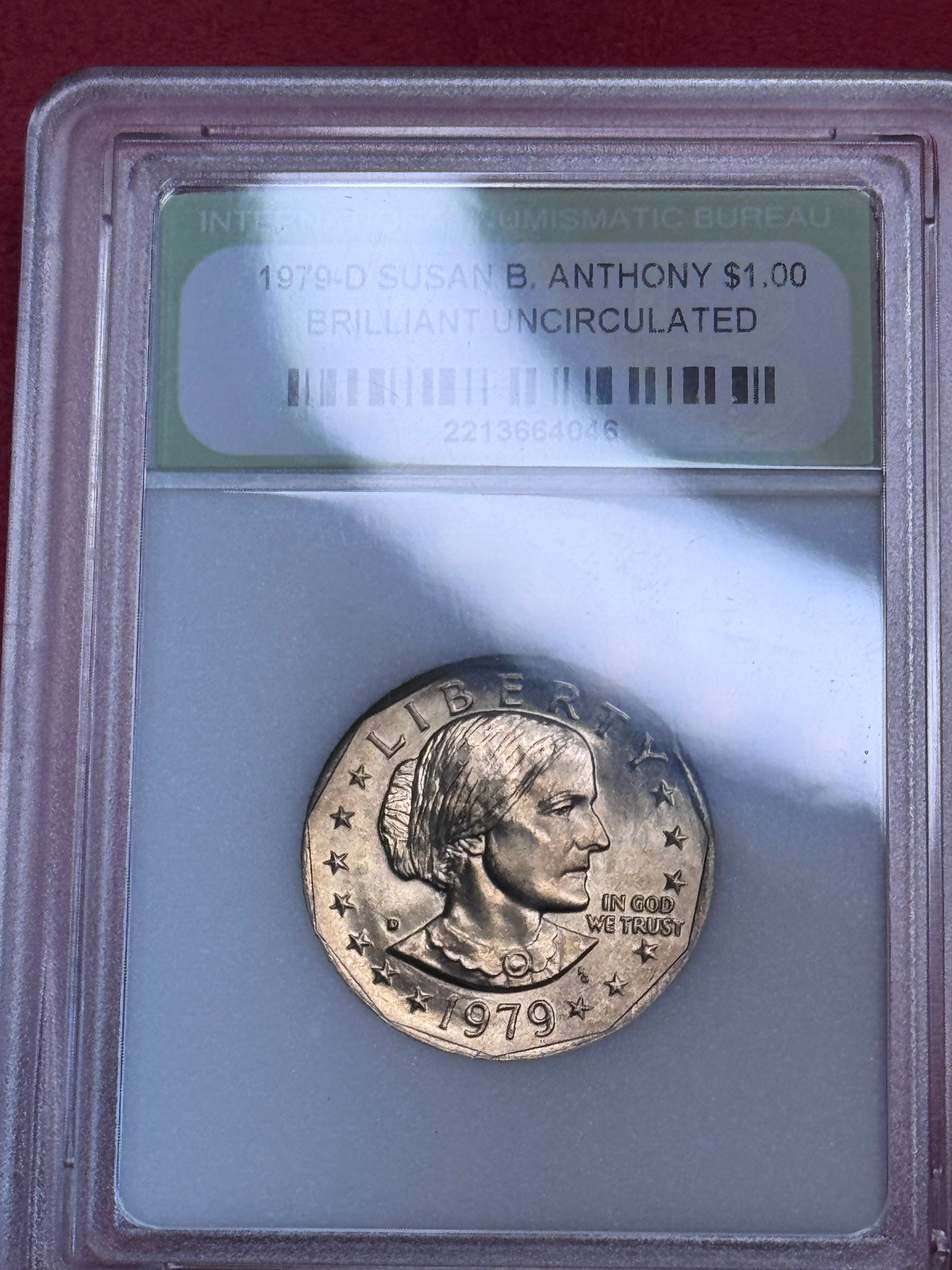• 6× bonus capsule/display coins: 2023-D Kennedy 50¢, 1979-D SBA $1, 2005-S Sacagawea $1 (DCAM Proof), 1978 Eisenhower $1 (BU), 1989-P Washington 25¢ (BU), 1989-D Jefferson 5¢ (BU).