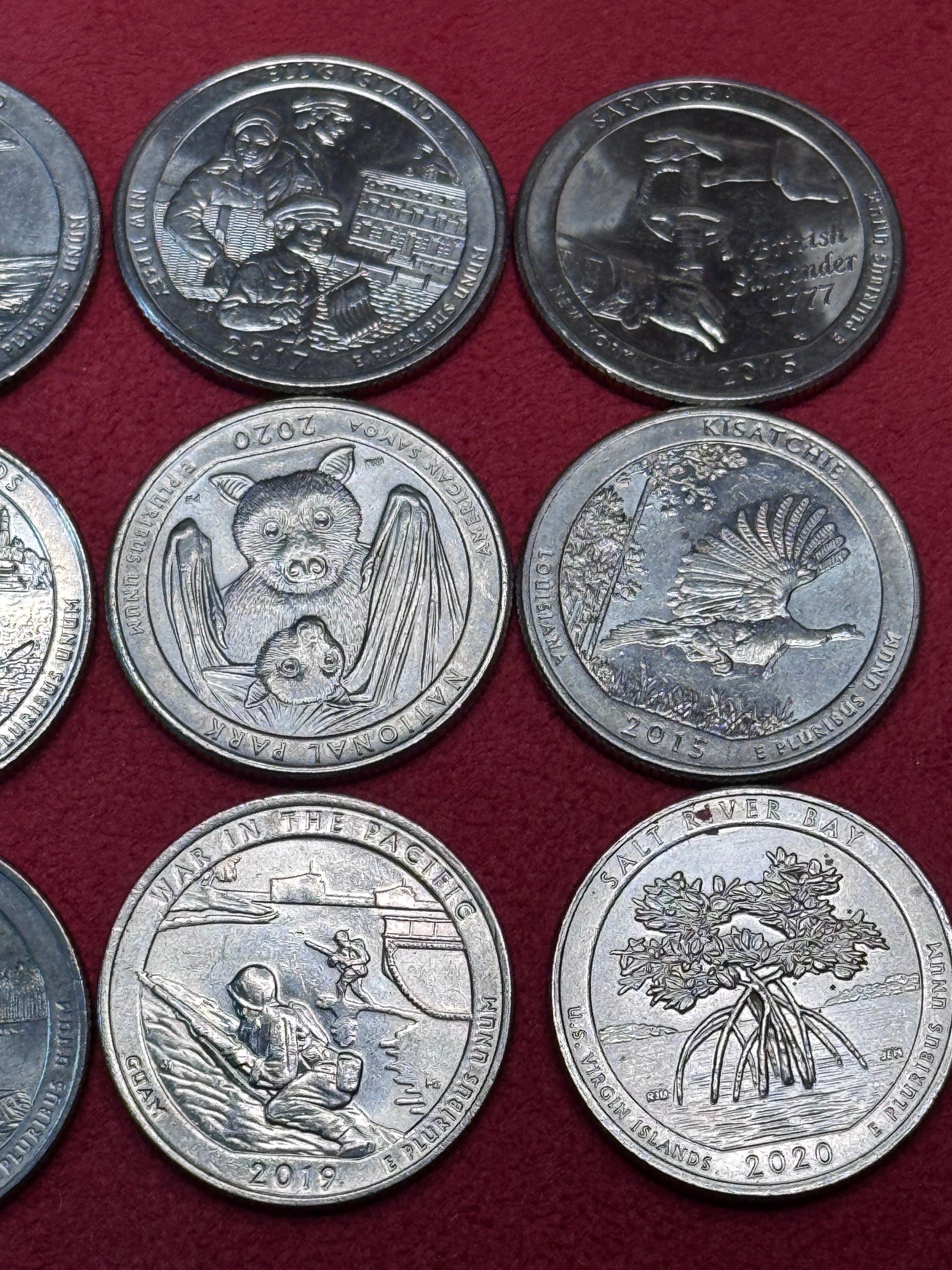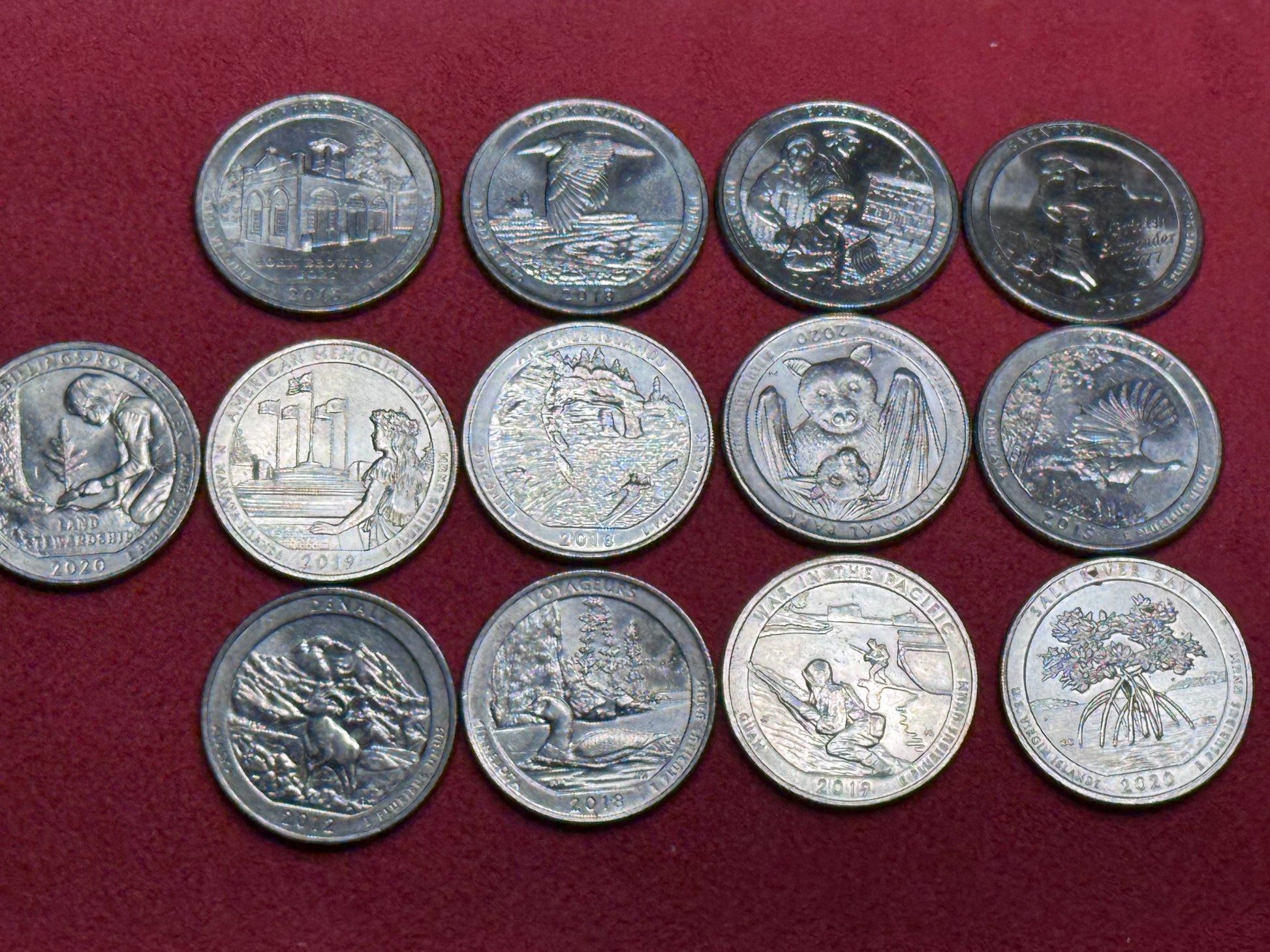 • 13× ATB quarters (no duplicates): iconic parks and monuments from HI volcanoes to WI sea caves and Pacific memorials — crisp circulated to eye appeal.