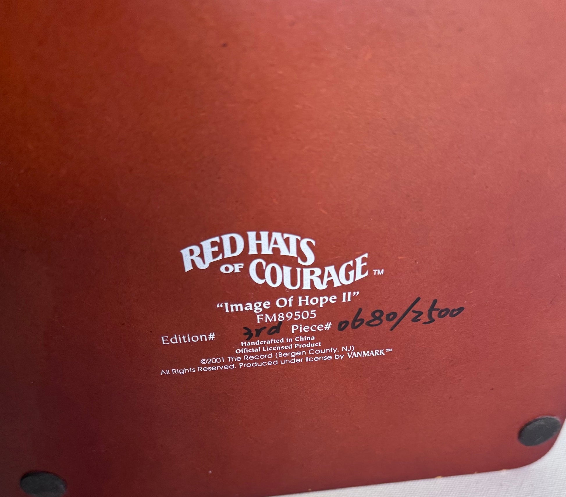 Red Hats of Courage – “Image of Hope II” 9/11 firefighter remembrance set. This listing includes the large limited-edition statue and the matching framed print shown together in the photos.
